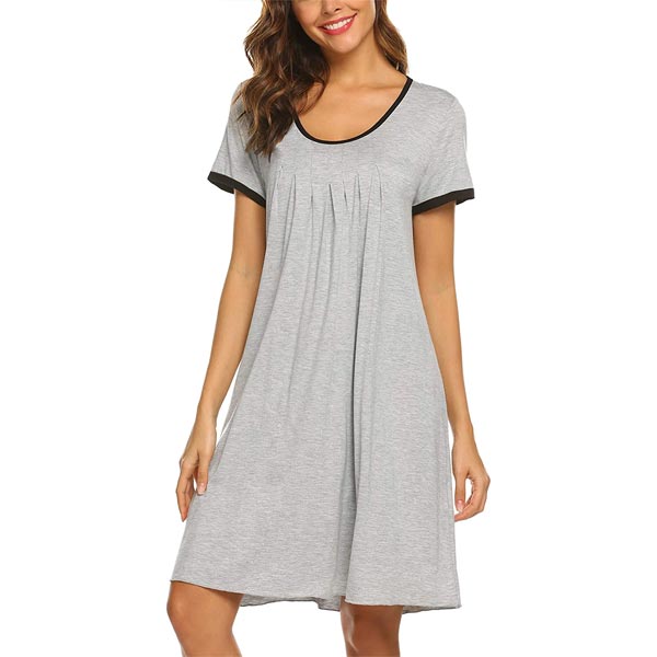 • 【Features】Nightdress featuring front pleats detail, short sleeve sleepshirt, round neck, solid color, contrasting trim decor around the neck and the sleeves